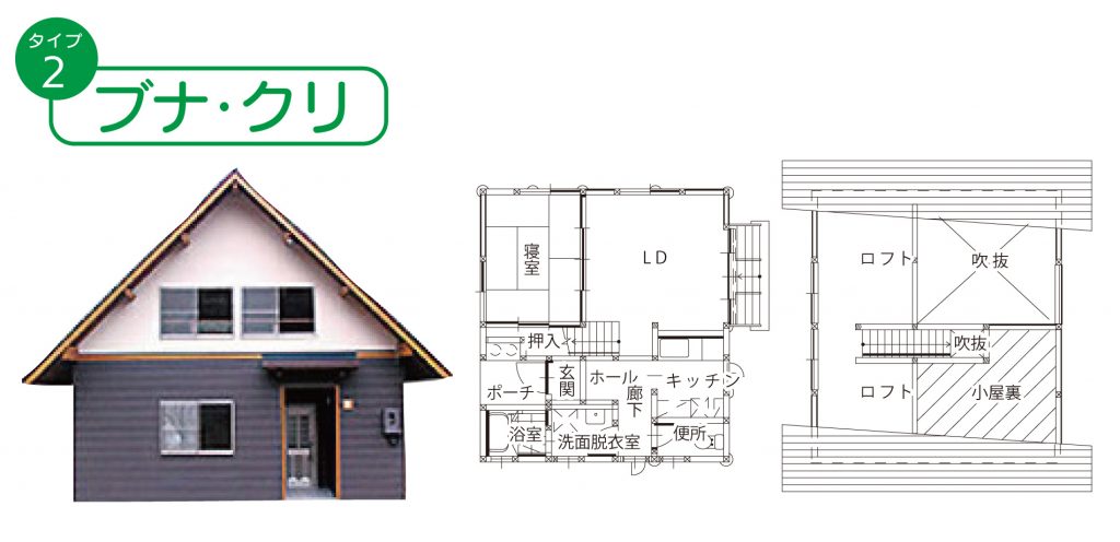 | 建物面積 | ナラ:建物面積70.9平米(農園面積32平米) ブナ・クリ:建物面積68.4平米(農園面積16平米) |